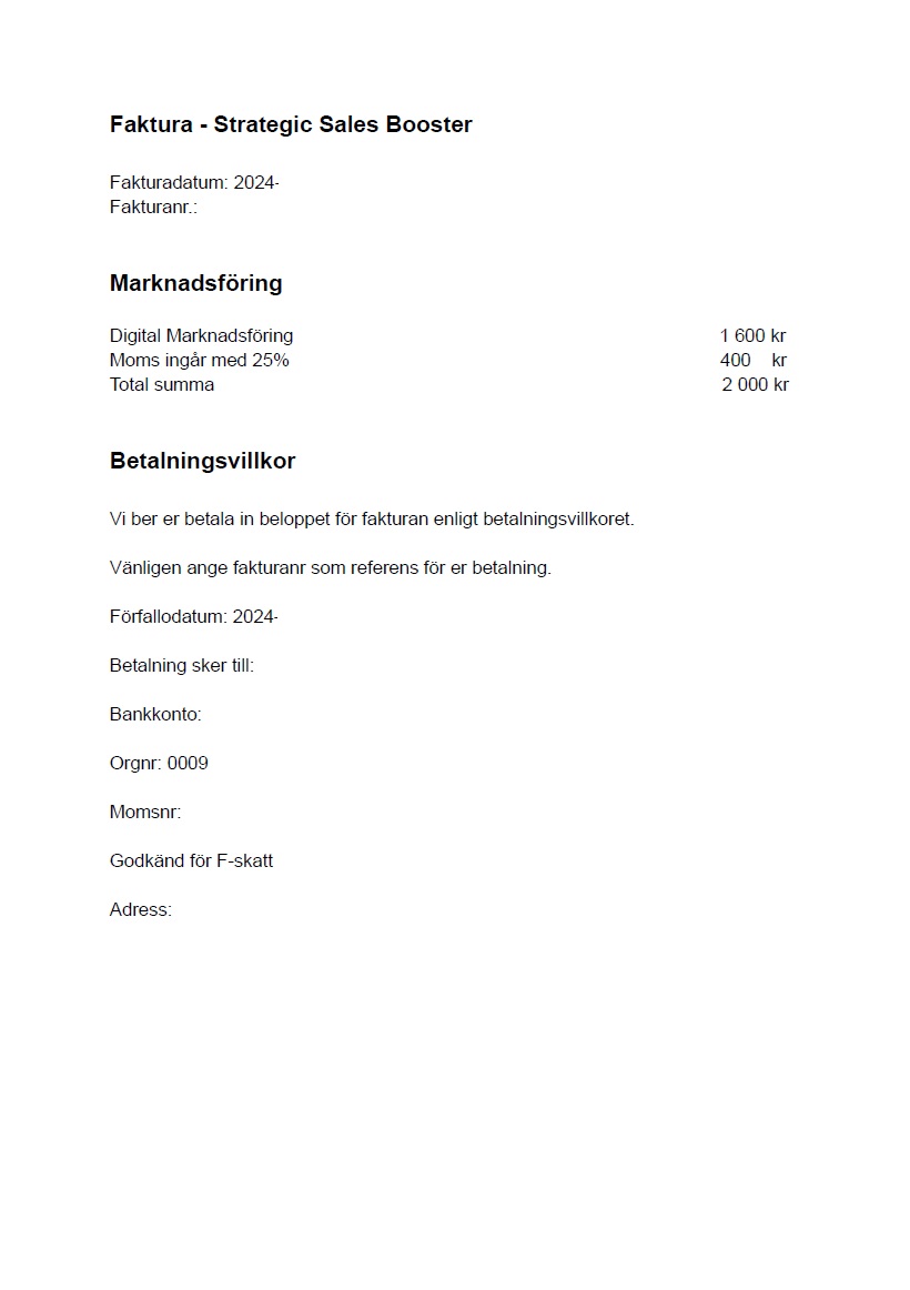 Strategic Sales Booster skickar fakturor angående digital marknadsföring, trots att man inte har beställt tjänsten.