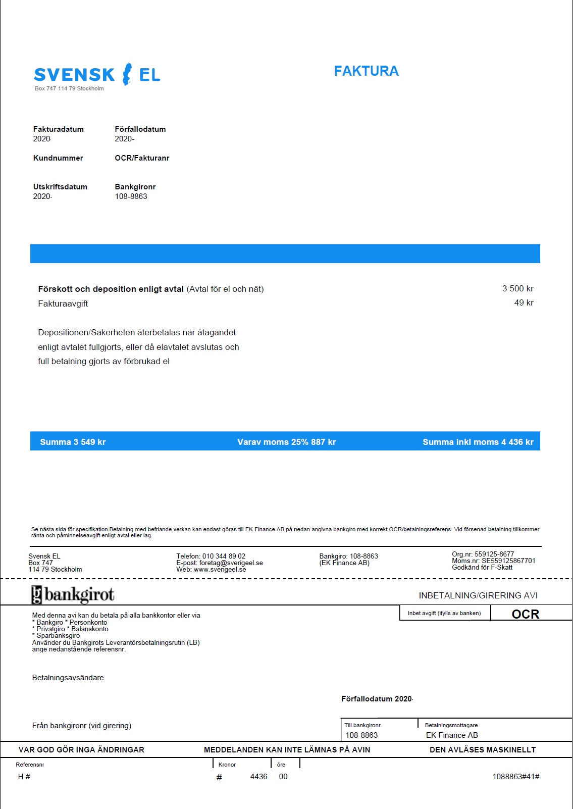 Senaste underrättelsen ser man ett samarbete med Förvaltnings El på fakturan.