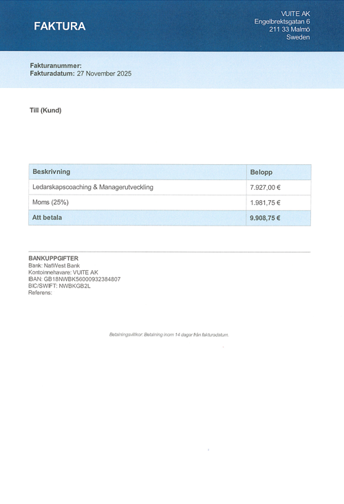 Observera! Dessa uppgifter är hämtade från fakturan och kan medvetet vara felaktiga.