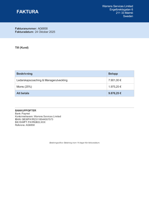 Observera! Dessa uppgifter är hämtade från fakturan och kan medvetet vara felaktiga.