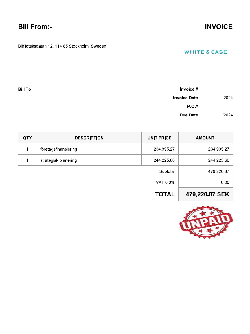 Observera! Dessa uppgifter är hämtade från fakturan och kan medvetet vara felaktiga.